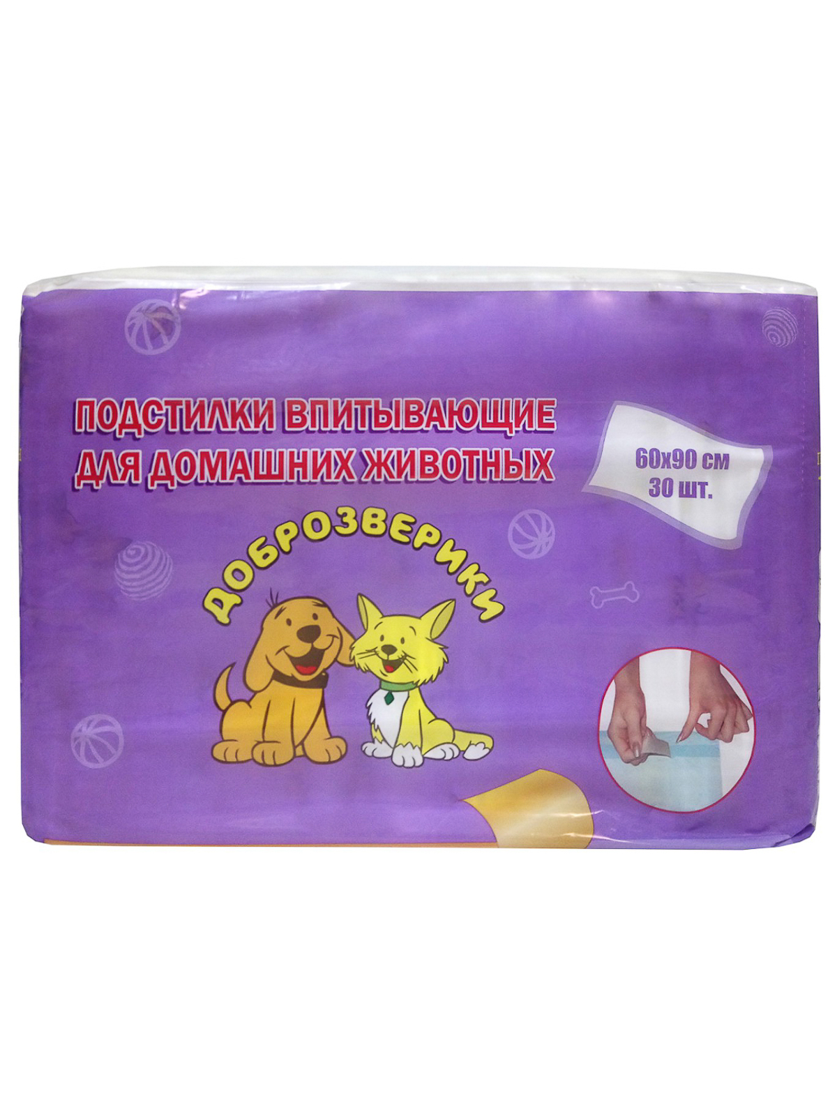 Подстилки впитывающие одноразовые для животных "ДОБРОЗВЕРИКИ" с суперабсорбентом 60х40см, 30шт.