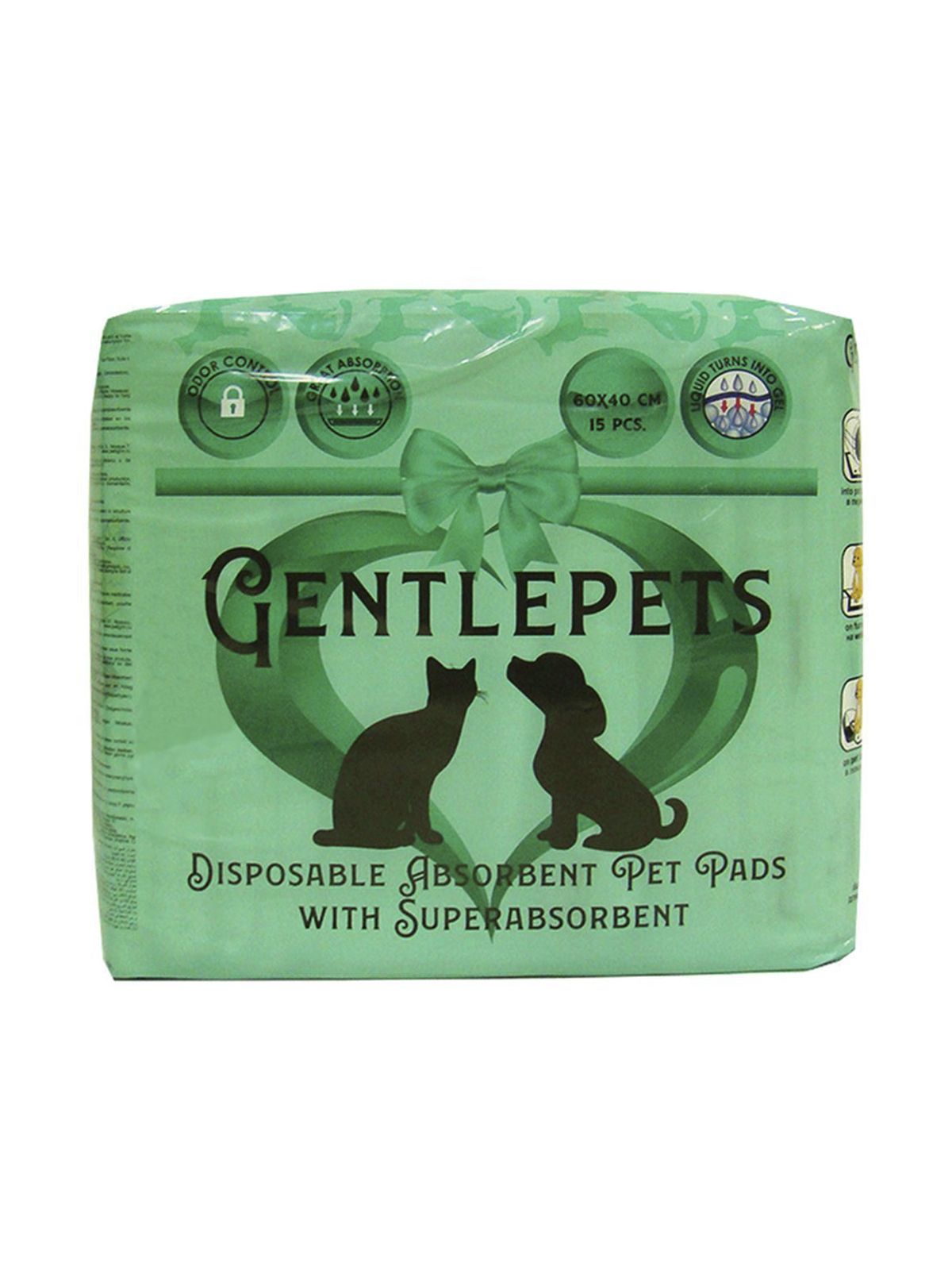 Подстилки впитывающие одноразовые для животных с суперабсорбентом "Gentlepets", 60х40см, 15шт.