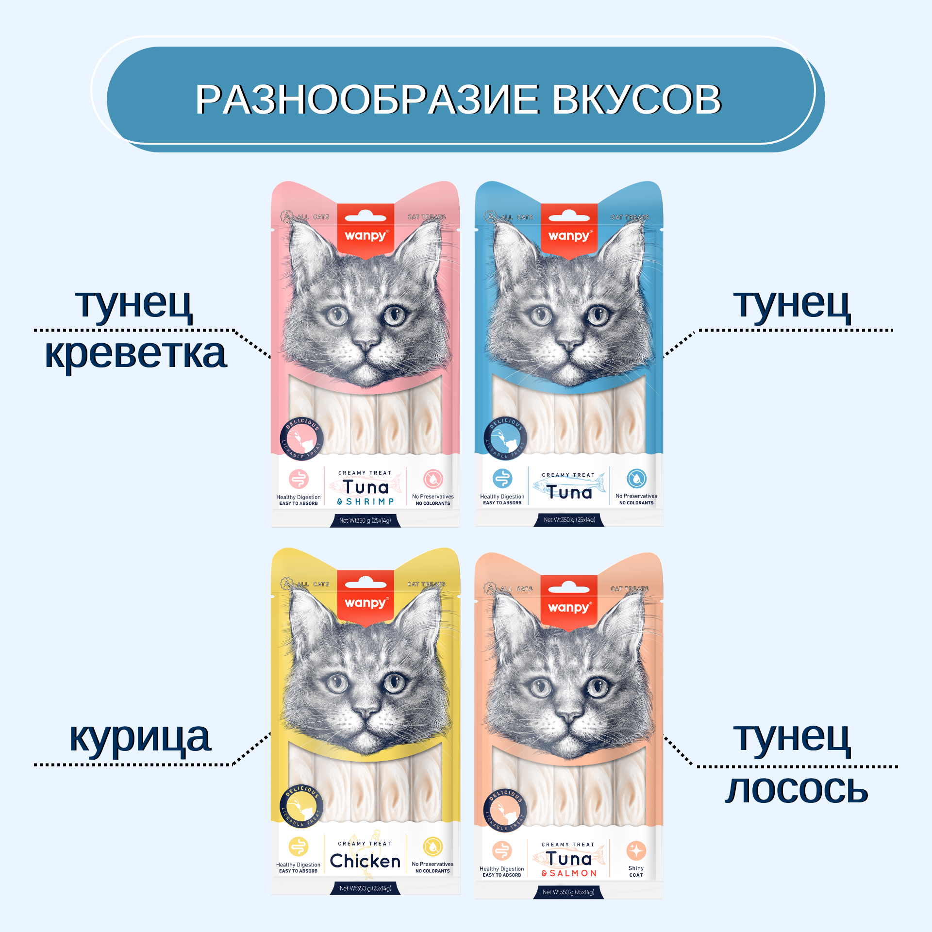 Порадуйте свою кошку полезным лакомством Wanpy с натуральным тунцом!