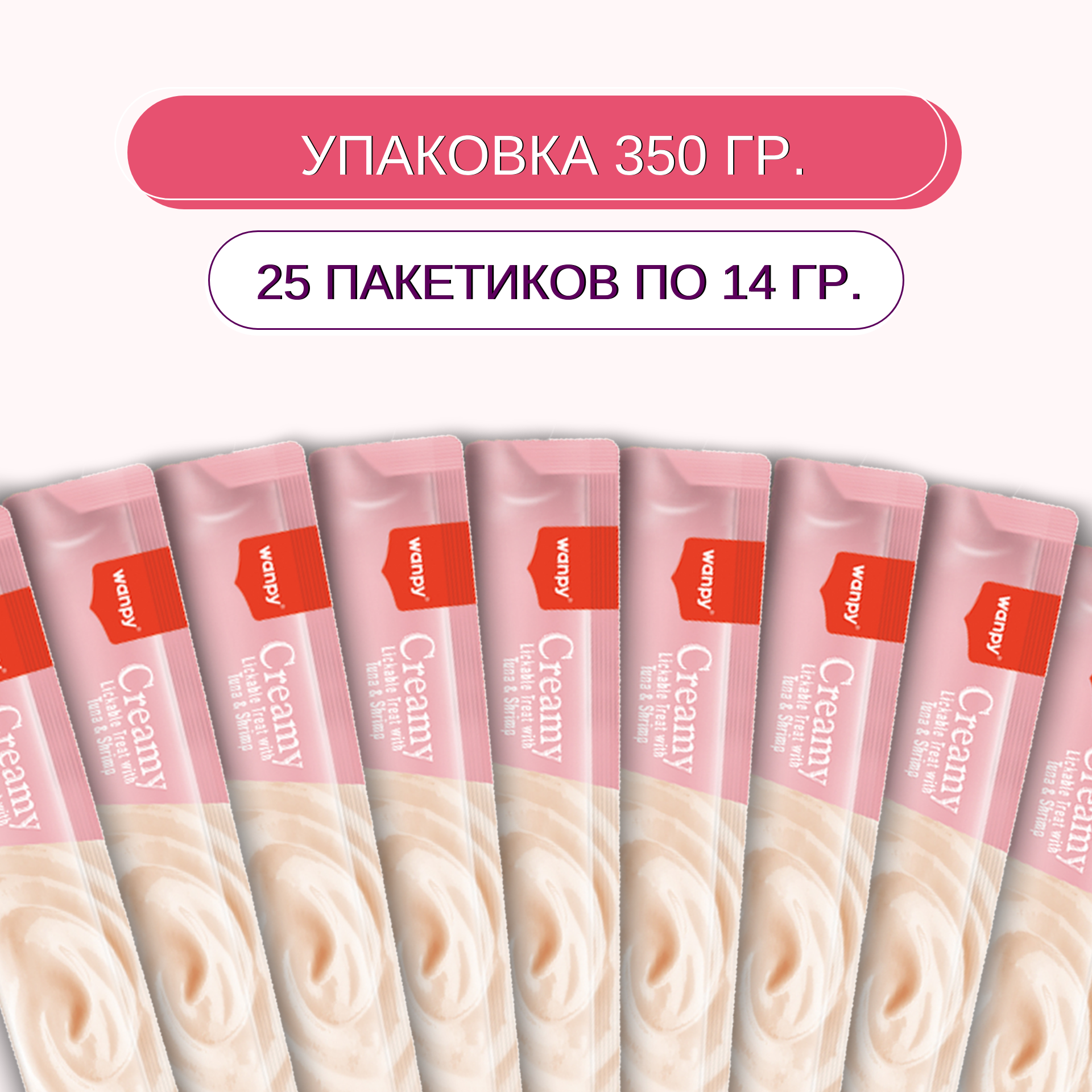 Wanpy Cat Лакомство для кошек "нежное пюре" из тунца и креветками 25 шт х14 г