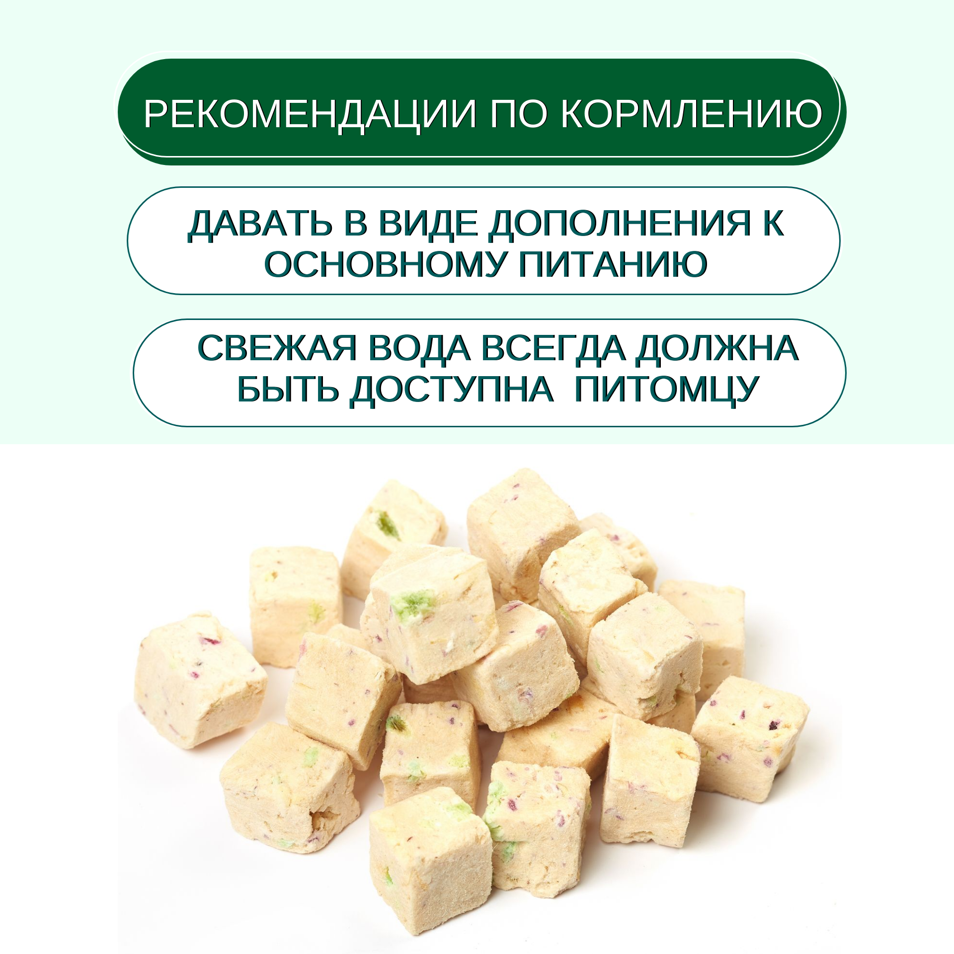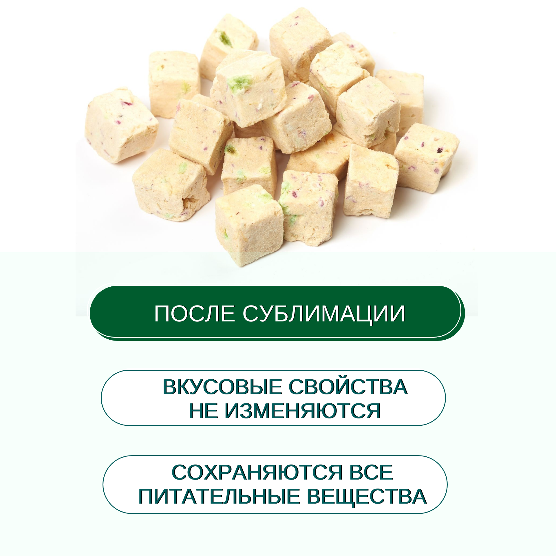 Wanpy Dog сублимированное лакомство для собак "Курица и овощи" - это уникальное и полезное угощение, которое сделает день вашего питомца ярче и вкуснее.Лакомство состоит из натуральных ингредиентов - курицы, зеленая фасоль, морковь, тыква. Благодаря специальному процессу сублимации, все полезные вещества и витамины сохраняются в продукте, при этом он становится еще более вкусным и ароматным.Питательная ценность лакомства впечатляет: на 100 г продукта приходится 75% белка, 6% жира, 1% клетчатки. Такой состав делает лакомство идеальным дополнением к рациону вашей собаки, помогая поддерживать ее активность и здоровье.Сырой жир в составе лакомства помогает поддерживать здоровье кожи и шерсти вашего питомца, а клетчатка способствует нормализации работы желудочно-кишечного тракта.Лакомство Wanpy - это повседневное угощение, которым можно наградить вашего питомца за послушание или просто порадовать его вкусным сюрпризом. Упаковка весом 40 г позволяет удобно дозировать количество лакомства и всегда иметь под рукой свежую порцию.